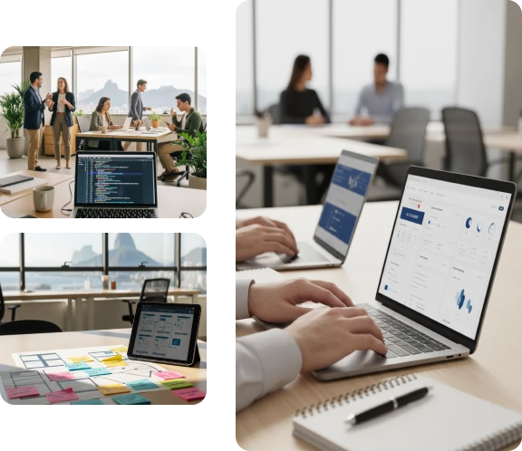 Construímos produtos digitais com visão de longo prazo. Do design à arquitetura, garantimos alta performance, acessibilidade e integrações corporativas que fazem a diferença no dia a dia.